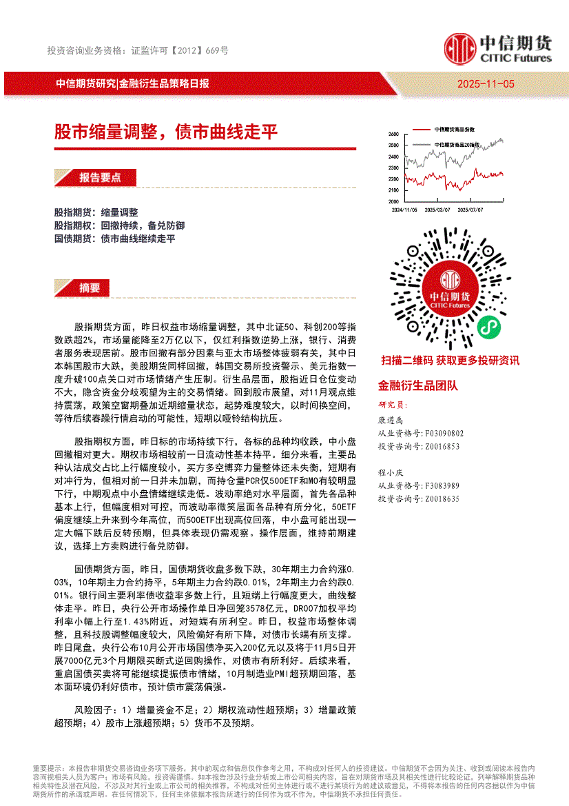 研报:中信期货-金融衍生品策略日报:股市缩量调整,债市曲线走平-251105