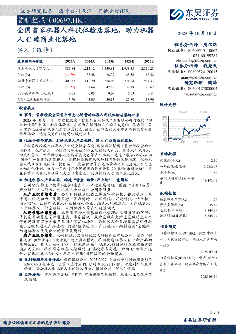 首程控股研报:金宝搏官网188金宝搏-首程控股-0697.HK-全国首家机器人科技体验店落地,助力机器人C端商业化落地-251010