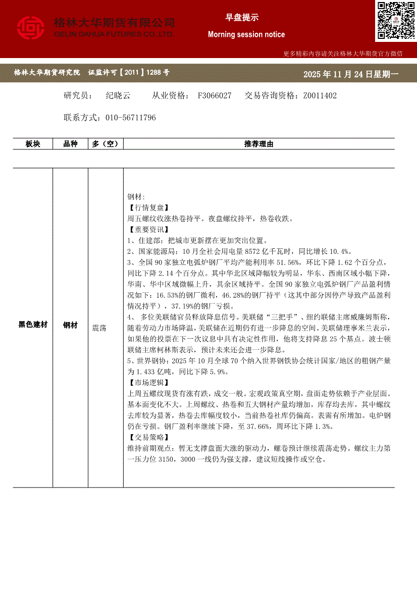 国元期货-黑色期货周报:供应边际回升,竞拍成交走低-251119