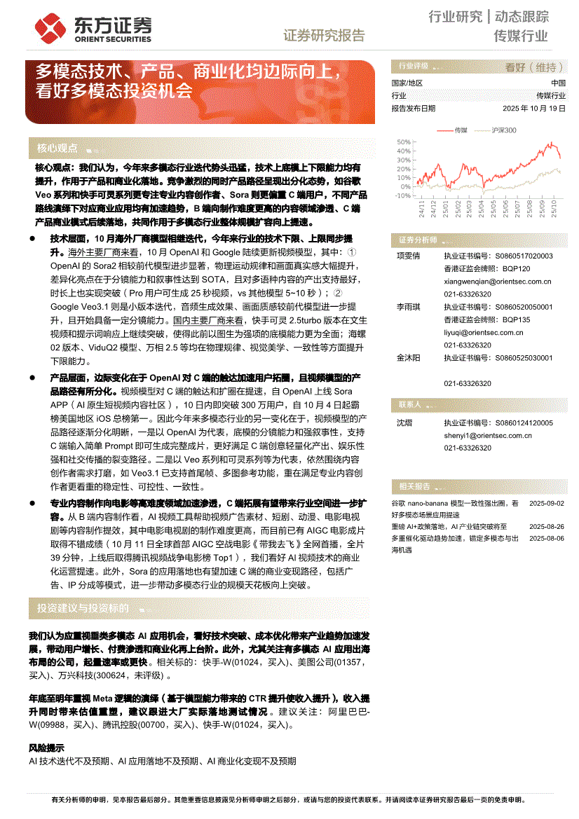 传媒行业研报:东方证券-传媒行业动态跟踪:多模态技术、产品、商业化均边际向上,看好多模态投资机会-251019