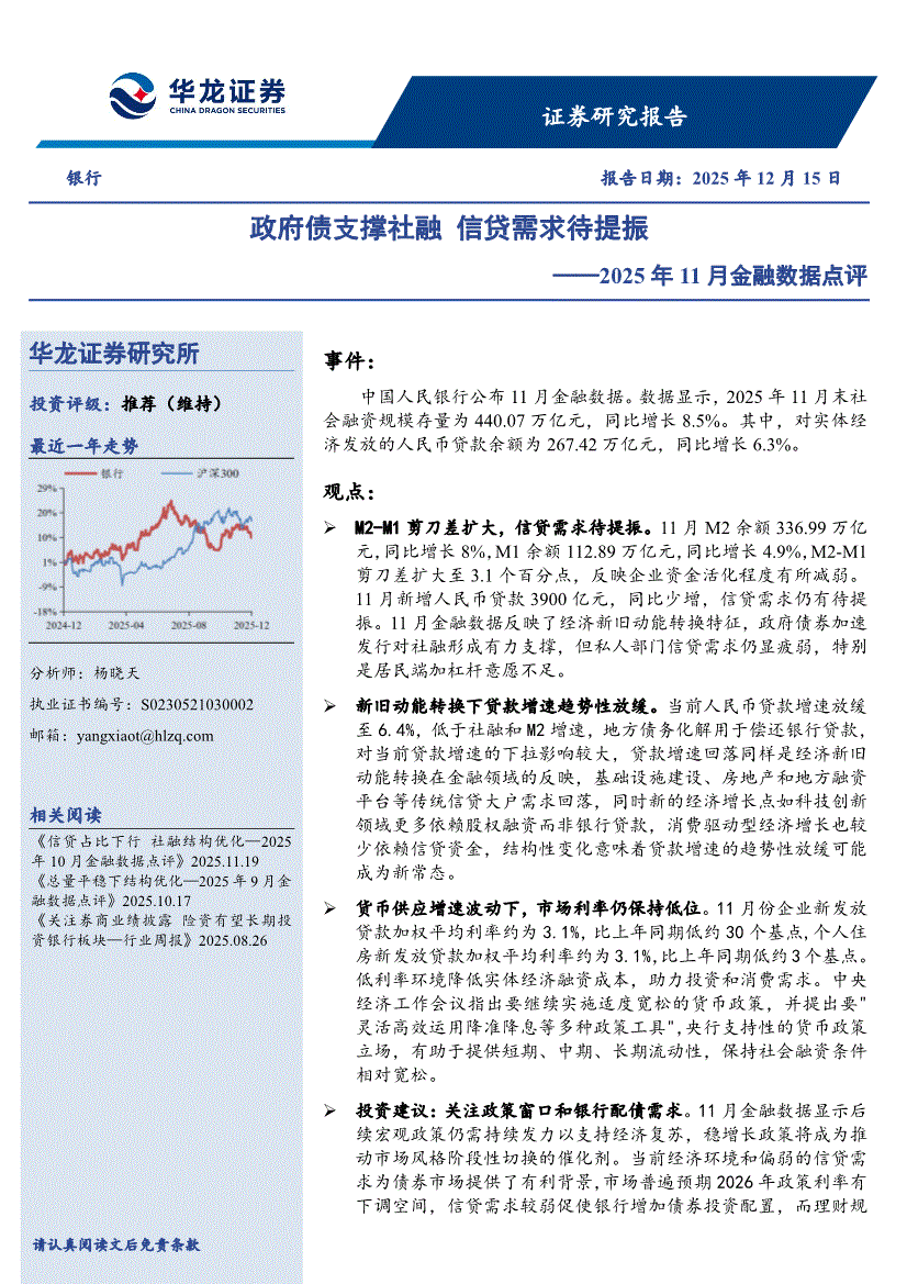 银行业研报:华龙证券-银行业2025年11月金融数据点评:政府债支撑社融,信贷需求待提振-251215