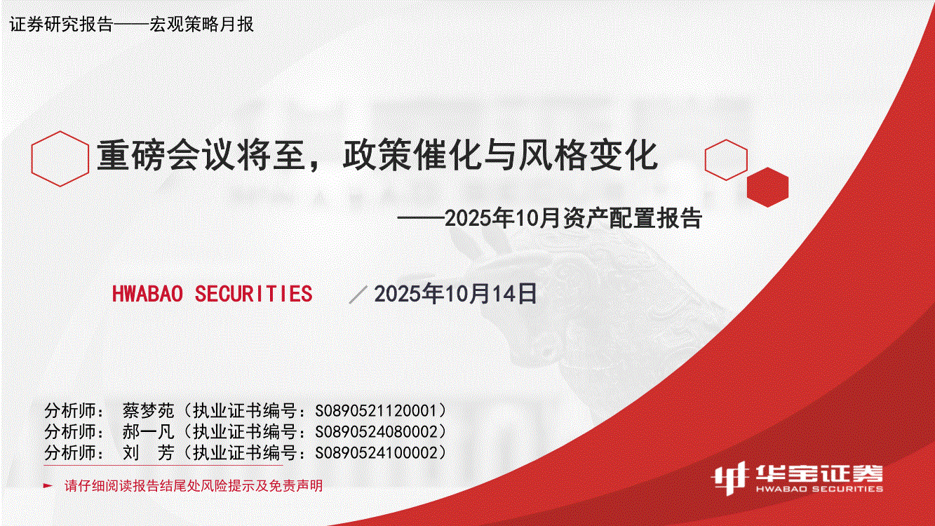 研报:华宝证券-2025年10月资产配置报告:重磅会议将至,政策催化与风格变化-251014