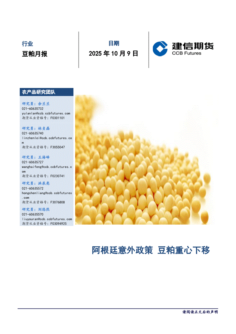 研报:建信期货-豆粕月报:阿根廷意外政策,豆粕重心下移-251009