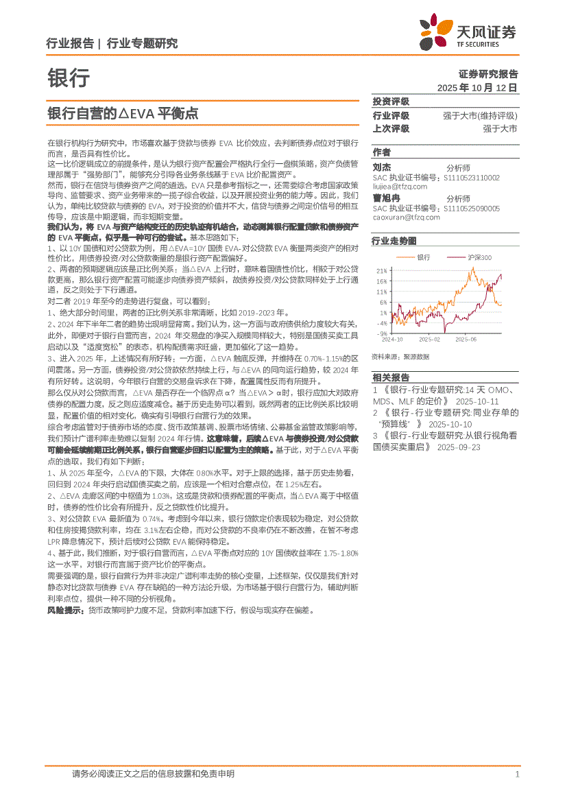 银行业研报:天风证券-银行业:银行自营的△EVA平衡点-251012