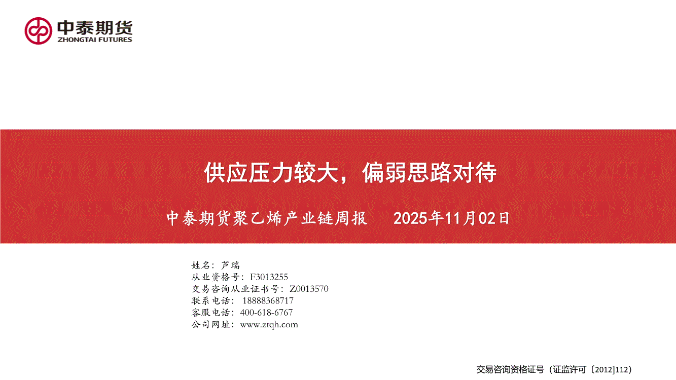研报:中泰期货-聚乙烯产业链周报:供应压力较大,偏弱思路对待-251102
