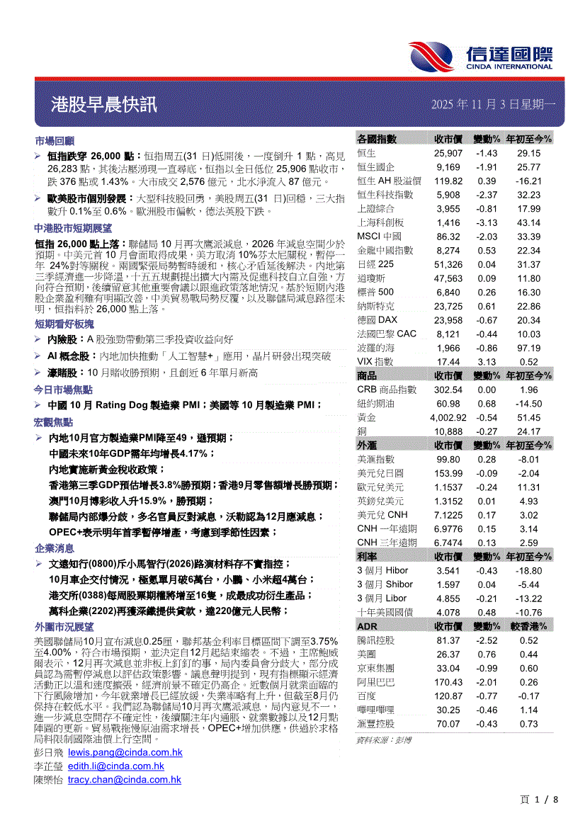 新华汇富-滙富快訊:香港及中國市場日報-251022