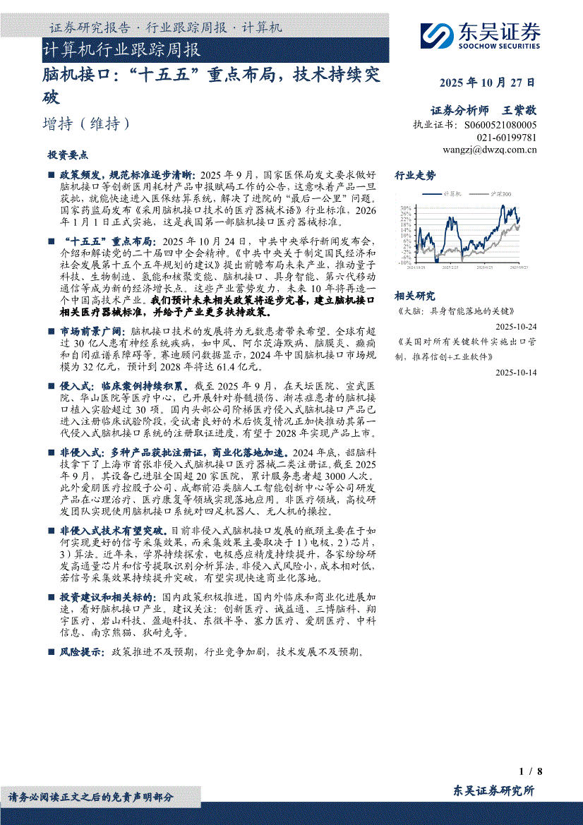 计算机行业研报:金宝搏官网188金宝搏-计算机行业跟踪周报:脑机接口,“十五五”重点布局,技术持续突破-251027
