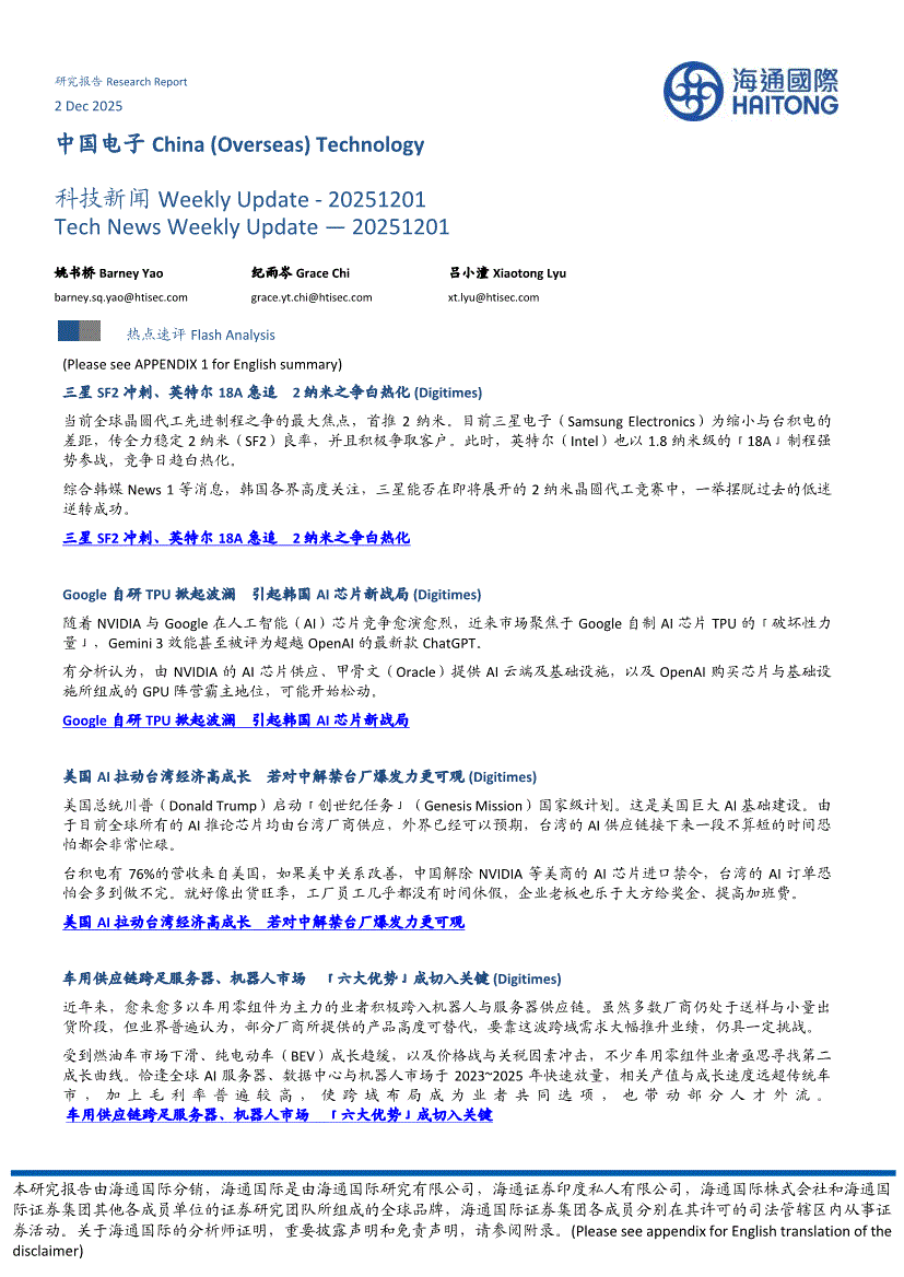 电子行业研报:海通国际-中国电子行业:科技新闻-251202