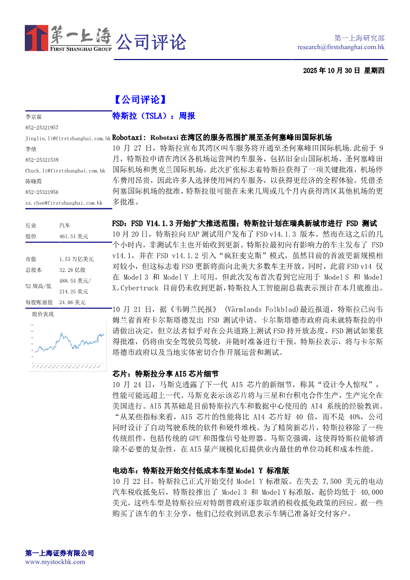 特斯拉研报:第一上海-特斯拉-TSLA.US-周报-251030