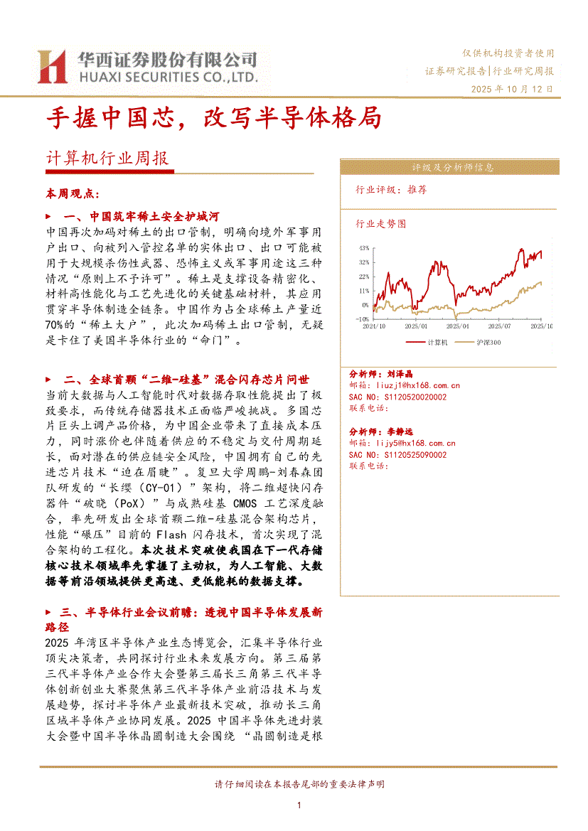 计算机行业研报:华西证券-计算机行业周报:手握中国芯,改写半导体格局-251012