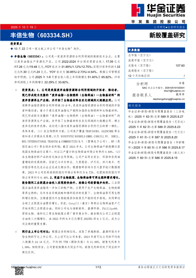 丰倍生物研报:华金证券-丰倍生物-603334-新股覆盖研究-251019