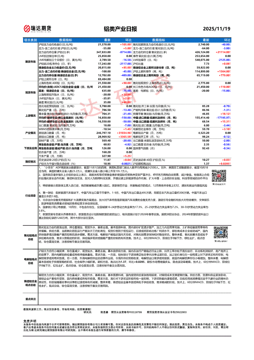 招商期货-基本金属铝产业链:氧化铝,供需过剩延续,但减产预期升温,电解铝,多头止盈引发价格回落,短期关注主力资金动向,铸造铝合金,废铝供应紧张,成本支撑价格维持高位-251116