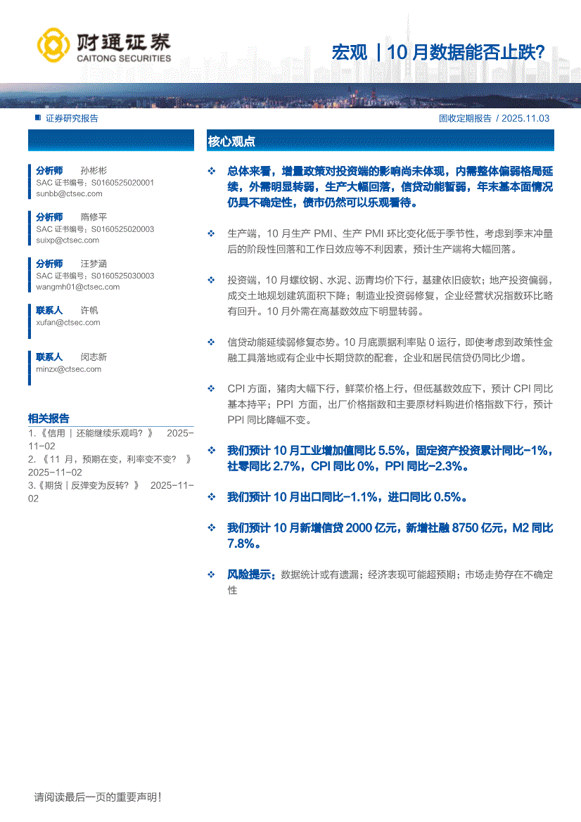 研报:财通证券-宏观|10月数据能否止跌?-251103