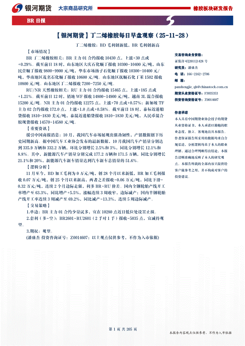 银河期货-丁二烯橡胶每日早盘观察-251128