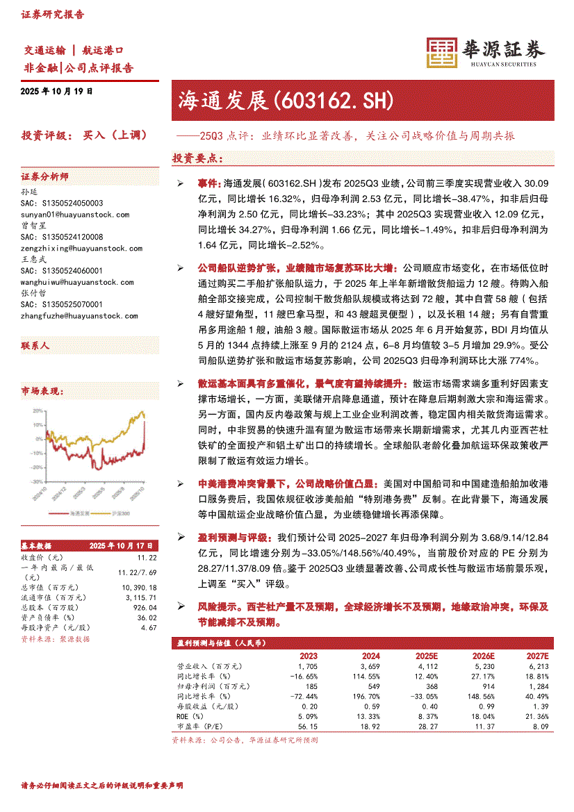 海通发展研报:华源证券-海通发展-603162-25Q3点评:业绩环比显著改善,关注公司战略价值与周期共振-251019