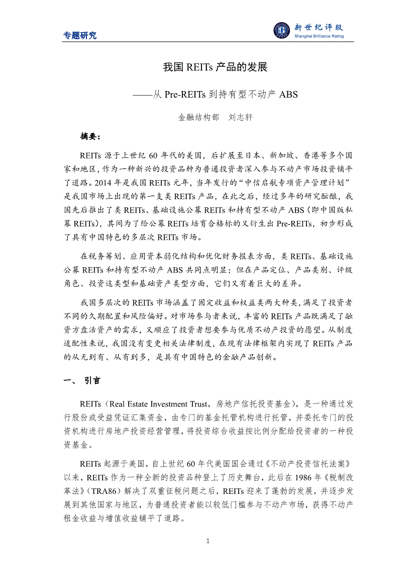 新世纪评级-我国REITs产品的发展——从Pre~REITs到持有型不动产ABS-251206