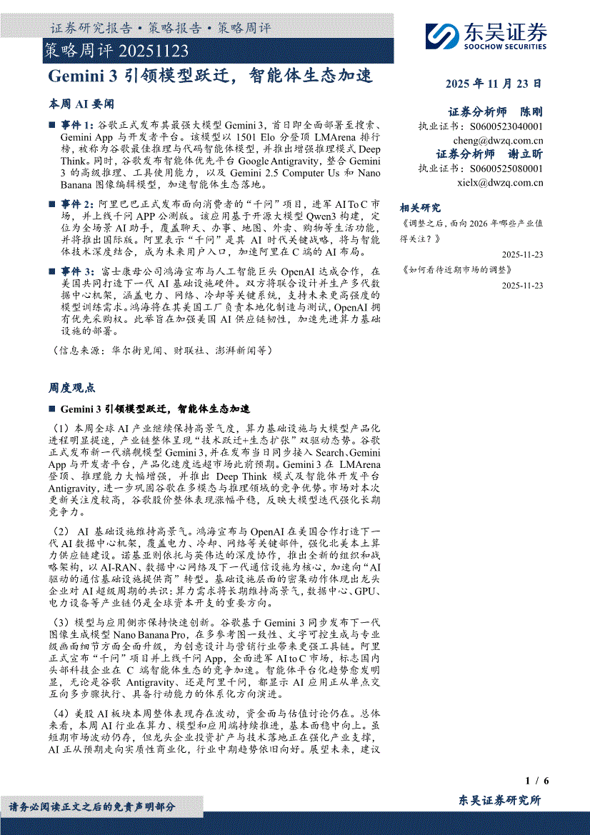 研报:金宝搏官网188金宝搏-策略周评:Gemini 3引领模型跃迁,智能体生态加速-251123