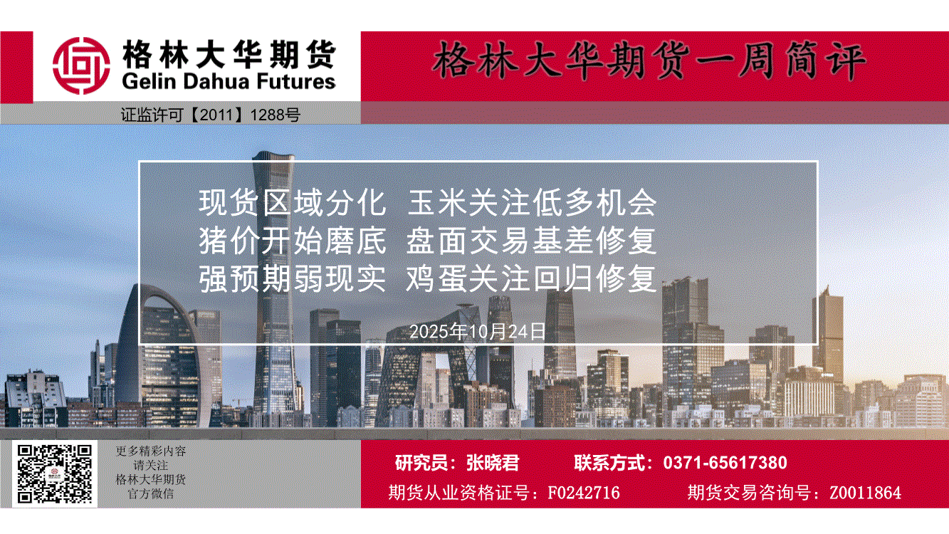 研报:格林大华期货-一周简评:现货区域分化,玉米关注低多机会,猪价开始磨底,盘面交易基差修复,强预期弱现实,鸡蛋关注回归修复-251024