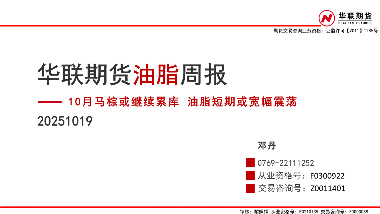华联期货-油脂周报:10月马棕或继续累库,油脂短期或宽幅震荡-251019