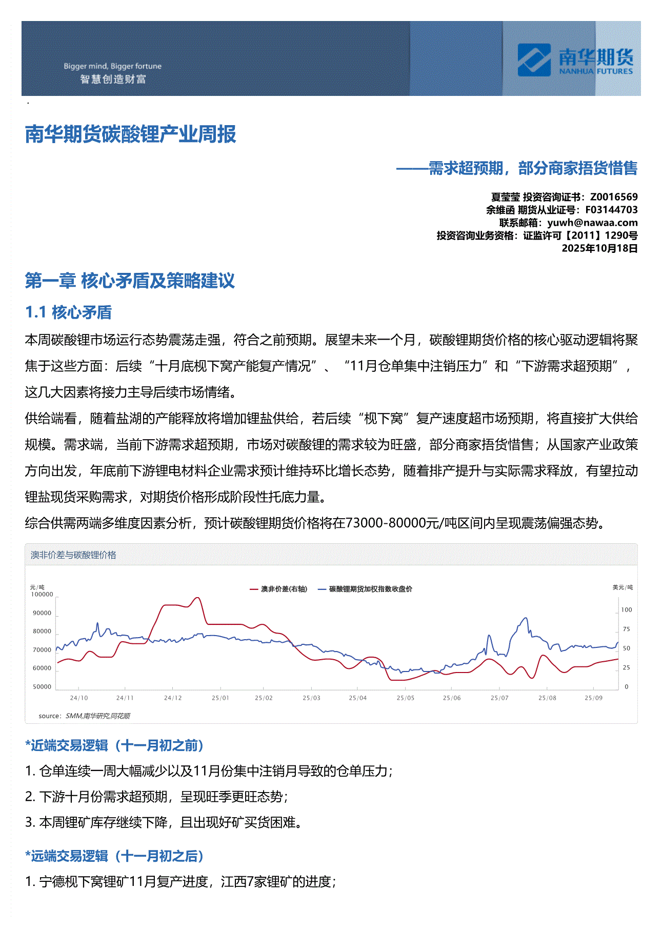 研报:南华期货-碳酸锂产业周报:需求超预期,部分企业捂货惜售-251018