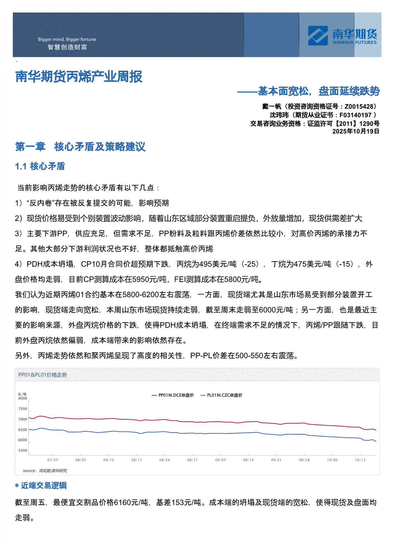研报:南华期货-丙烯产业周报:基本面宽松,盘面延续跌势-251019
