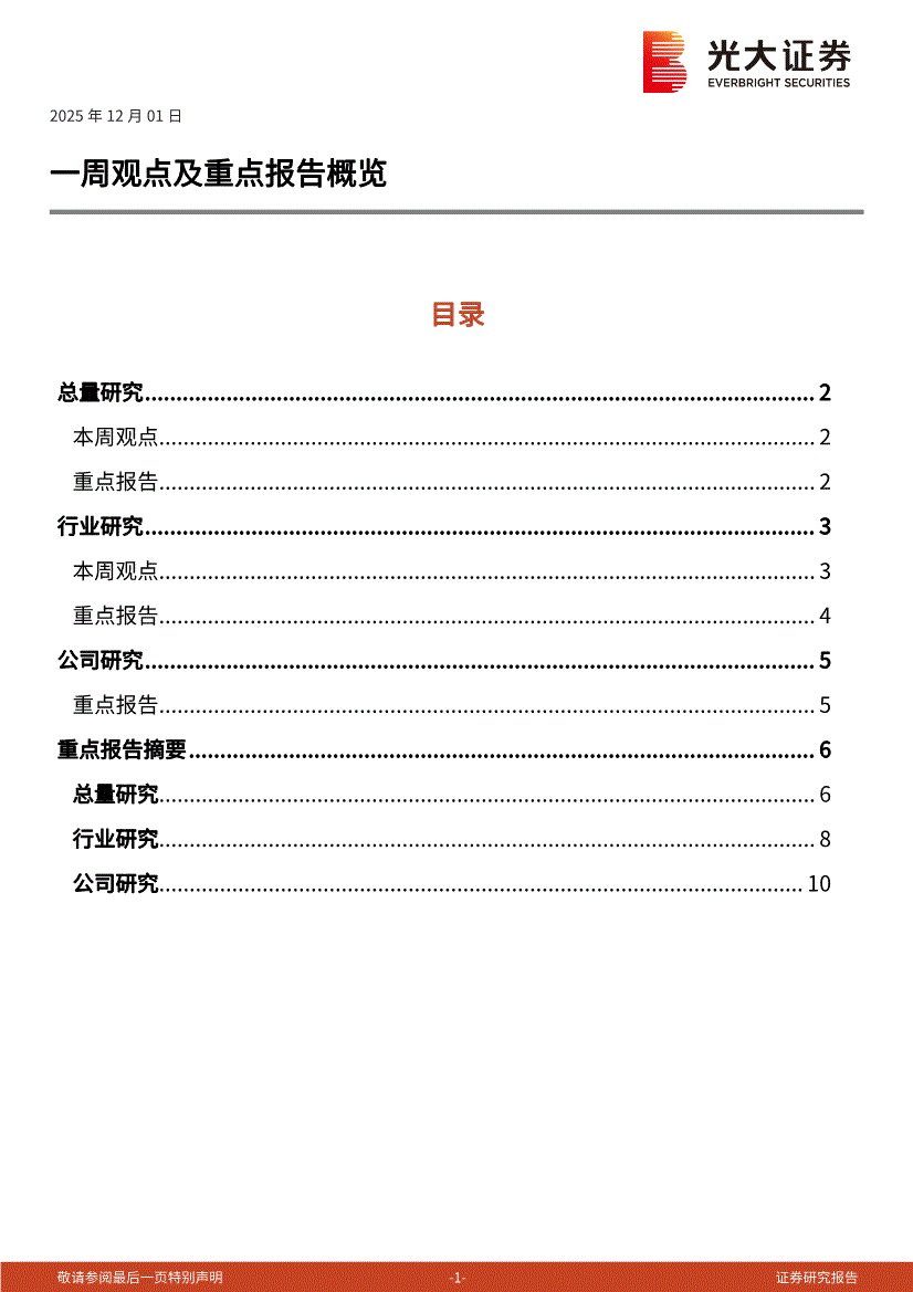 光大证券-一周观点及重点报告概览-251201