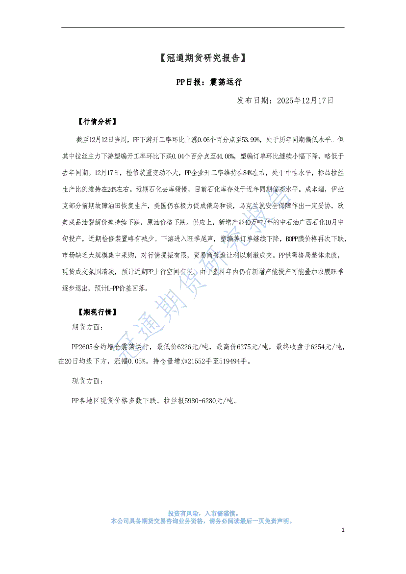 冠通期货-芳烃日报:纯苯库存压制、苯乙烯供需双弱-251216