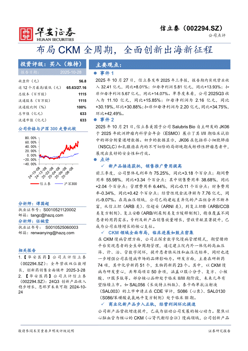 信立泰研报:华安证券-信立泰-002294-布局CKM全周期,全面创新出海新征程-251028