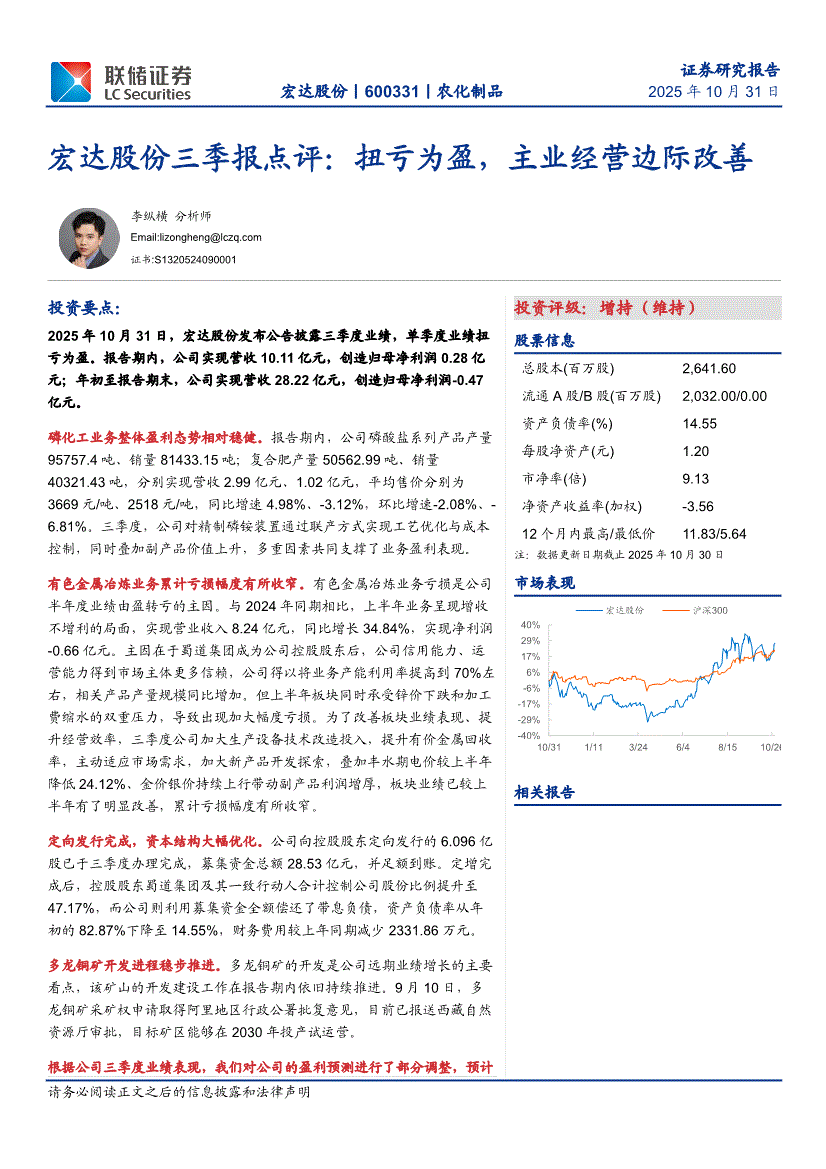 宏达股份研报:联储证券-宏达股份-600331-三季报点评:扭亏为盈,主业经营边际改善-251031