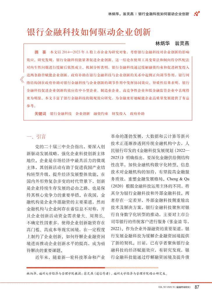 金融市场研究-银行金融科技如何驱动企业创新-251028