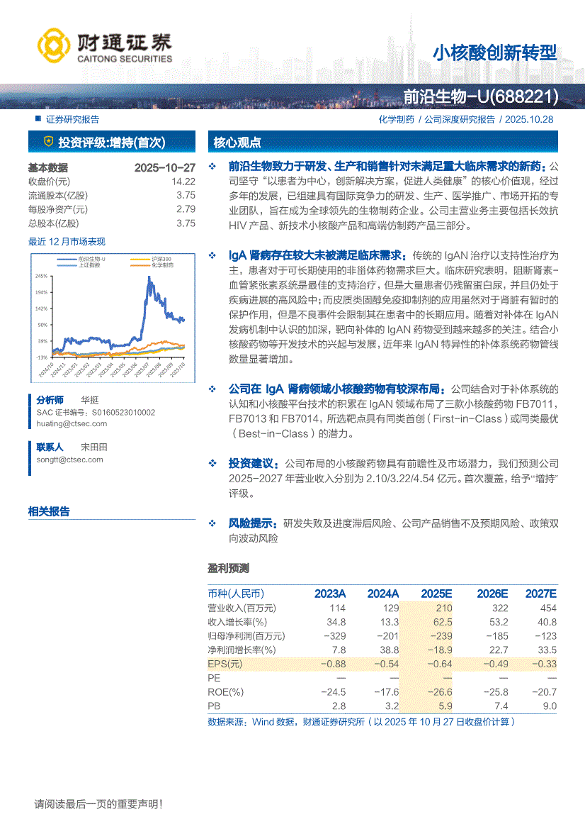 前沿生物研报:财通证券-前沿生物-688221-小核酸创新转型-251028