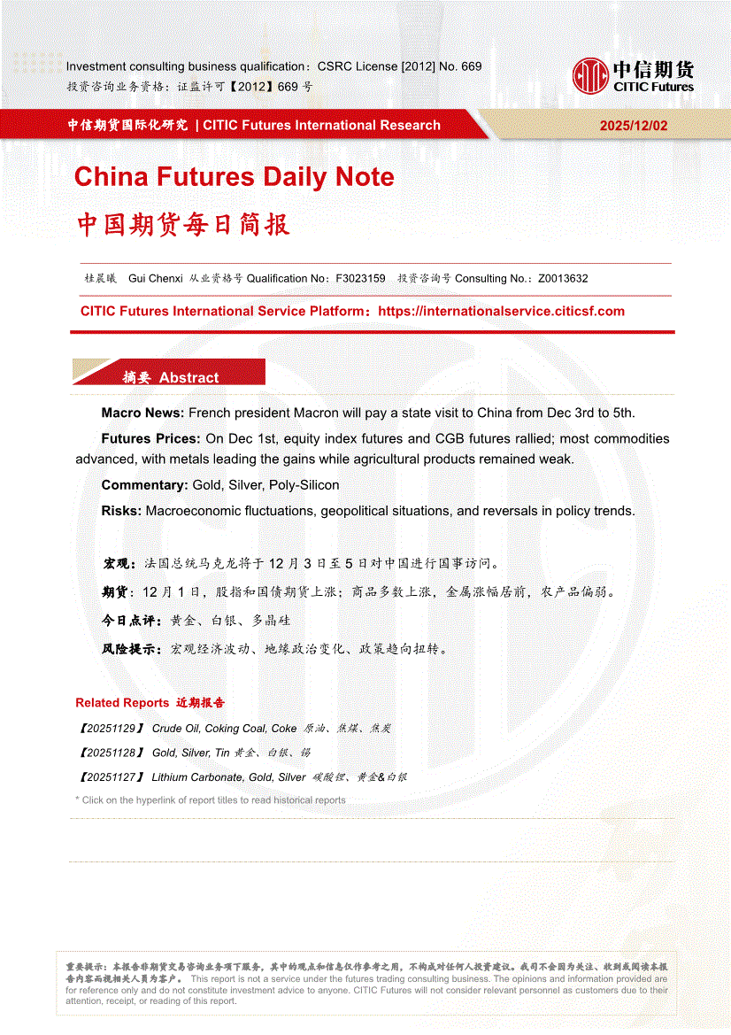 国元期货-贵金属期货周报:宏观宽松托底,贵金属走强-251201