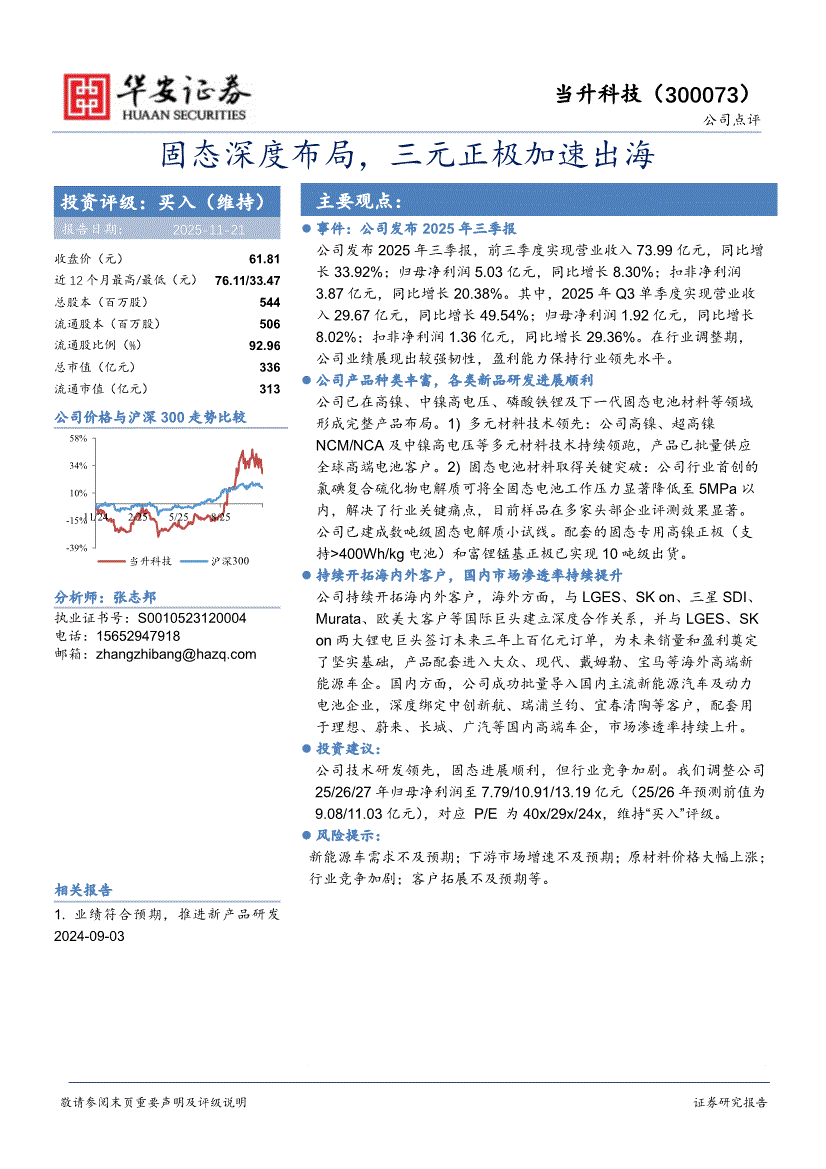 当升科技研报:华安证券-当升科技-300073-固态深度布局,三元正极加速出海-251121