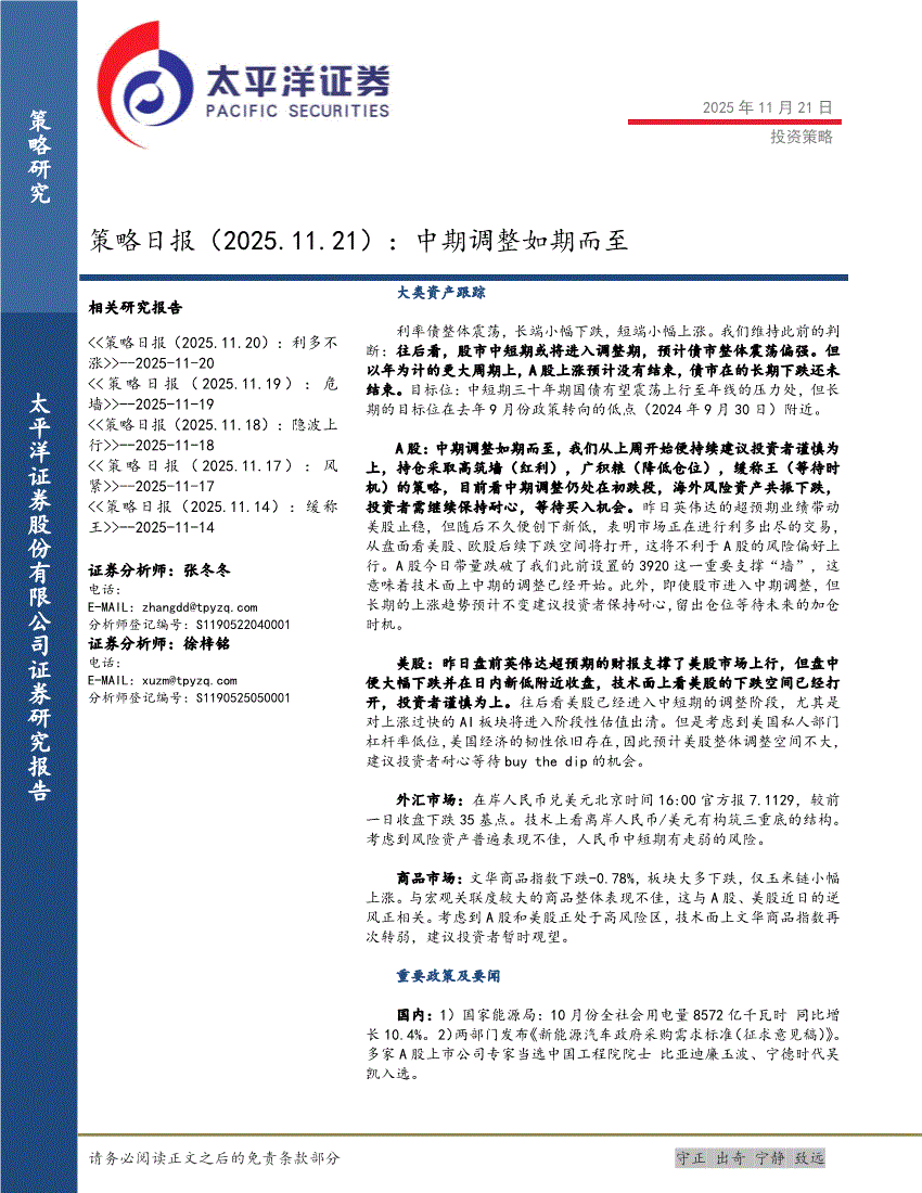 研报:太平洋证券-策略日报:中期调整如期而至-251121