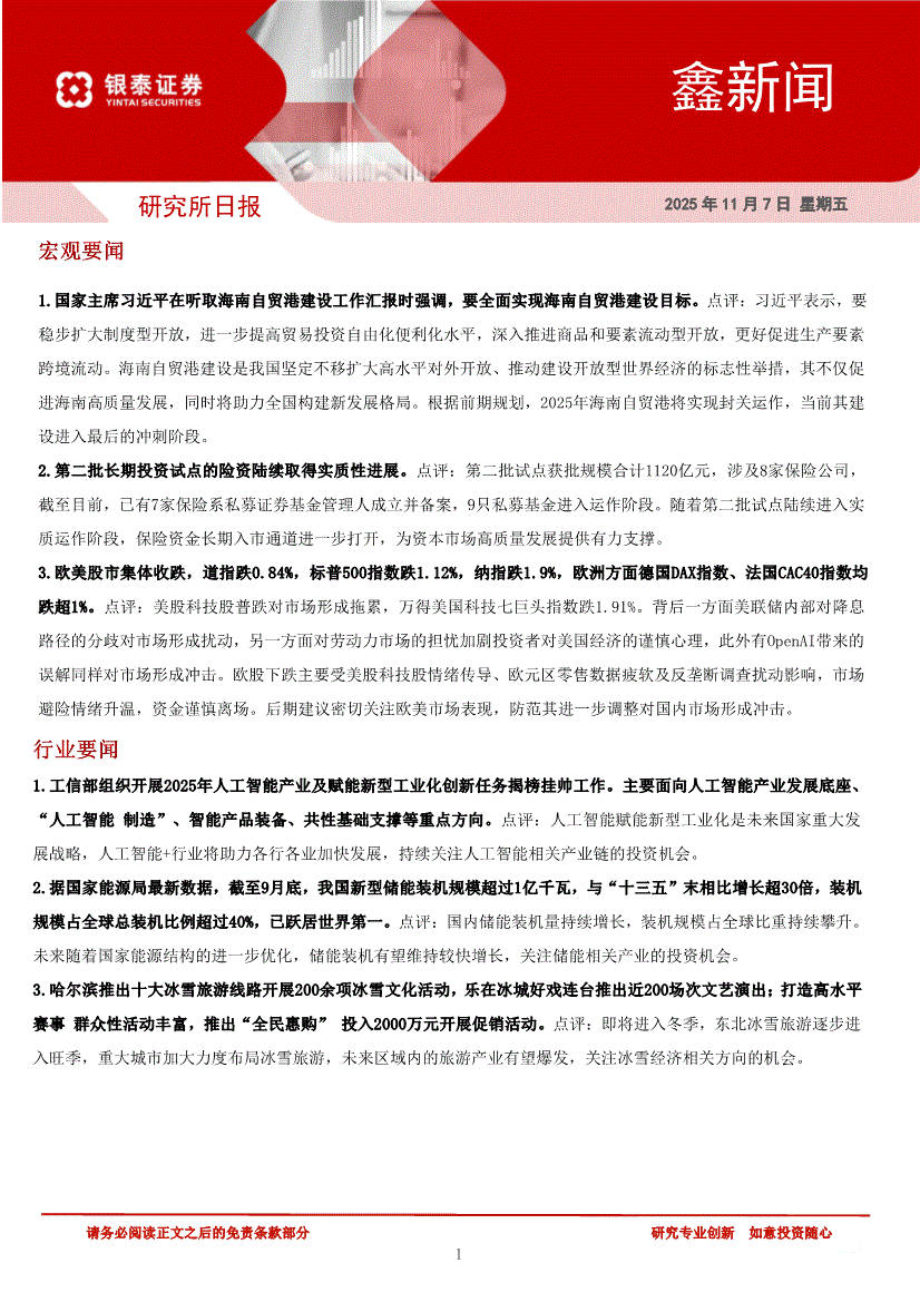 研报:银泰证券-鑫新闻-251107