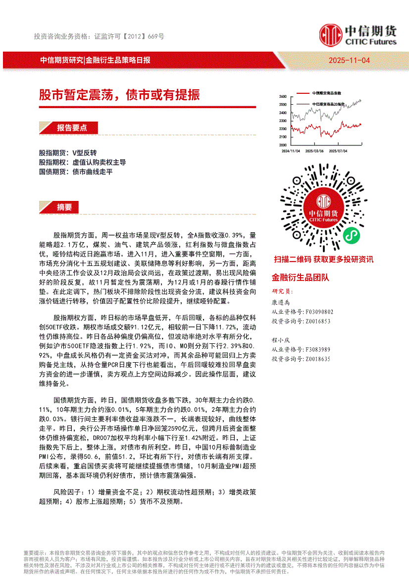 研报:中信期货-金融衍生品策略日报:股市暂定震荡,债市或有提振-251104