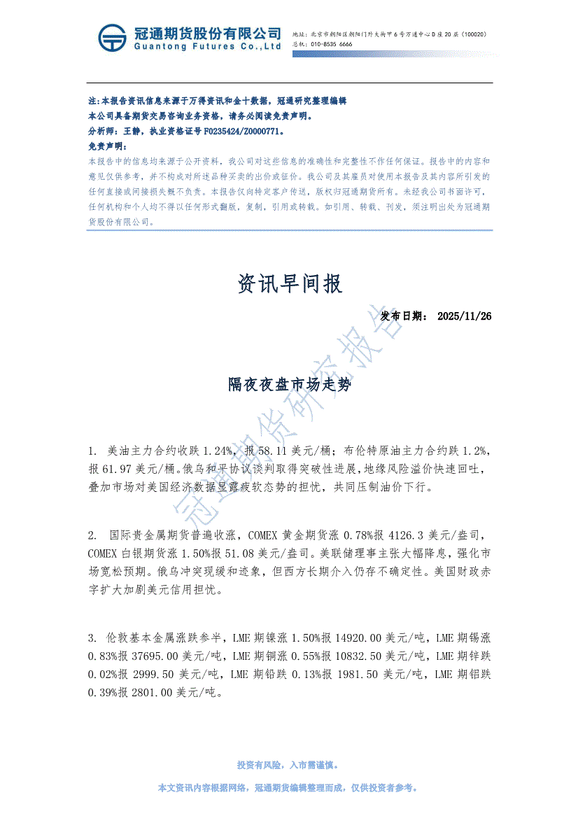 研报:冠通期货-资讯早间报-251126