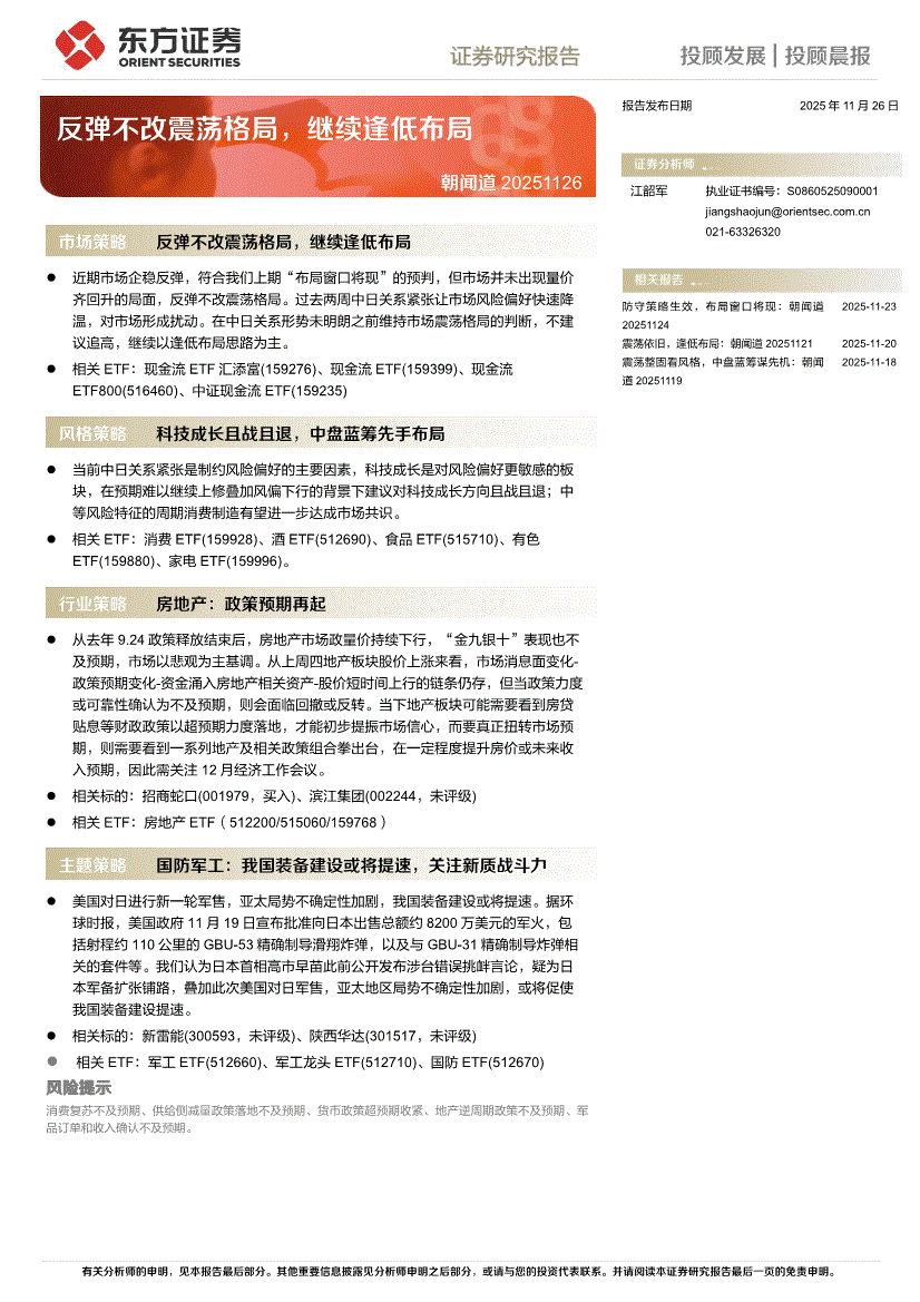 研报:东方证券-朝闻道:反弹不改震荡格局,继续逢低布局-251126