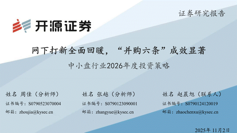 研报:开源证券-中小盘行业2026年度投资策略:网下打新全面回暖,“并购六条”成效显著-251102