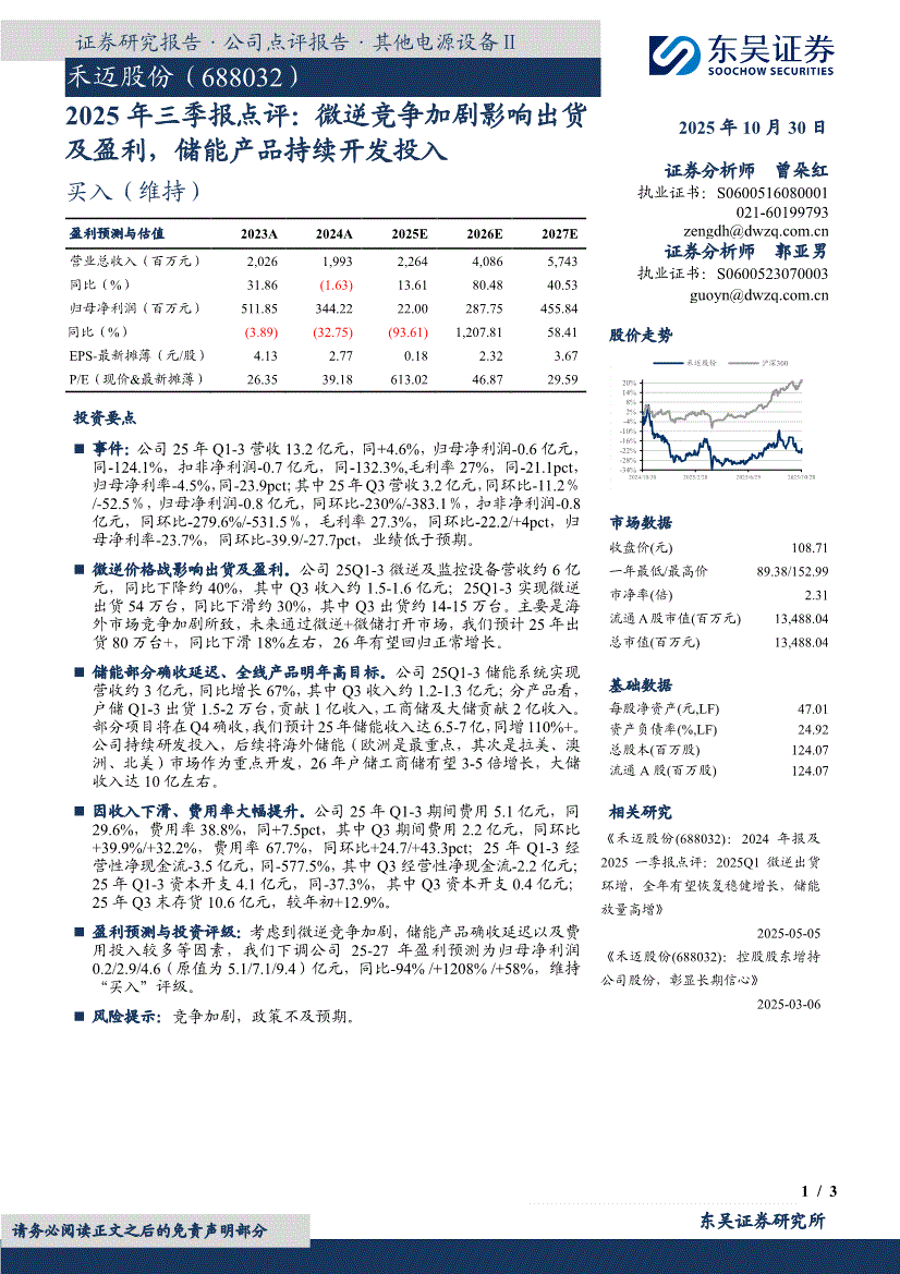 禾迈股份研报:金宝搏官网188金宝搏-禾迈股份-688032-2025年三季报点评:微逆竞争加剧影响出货及盈利,储能产品持续开发投入-251030