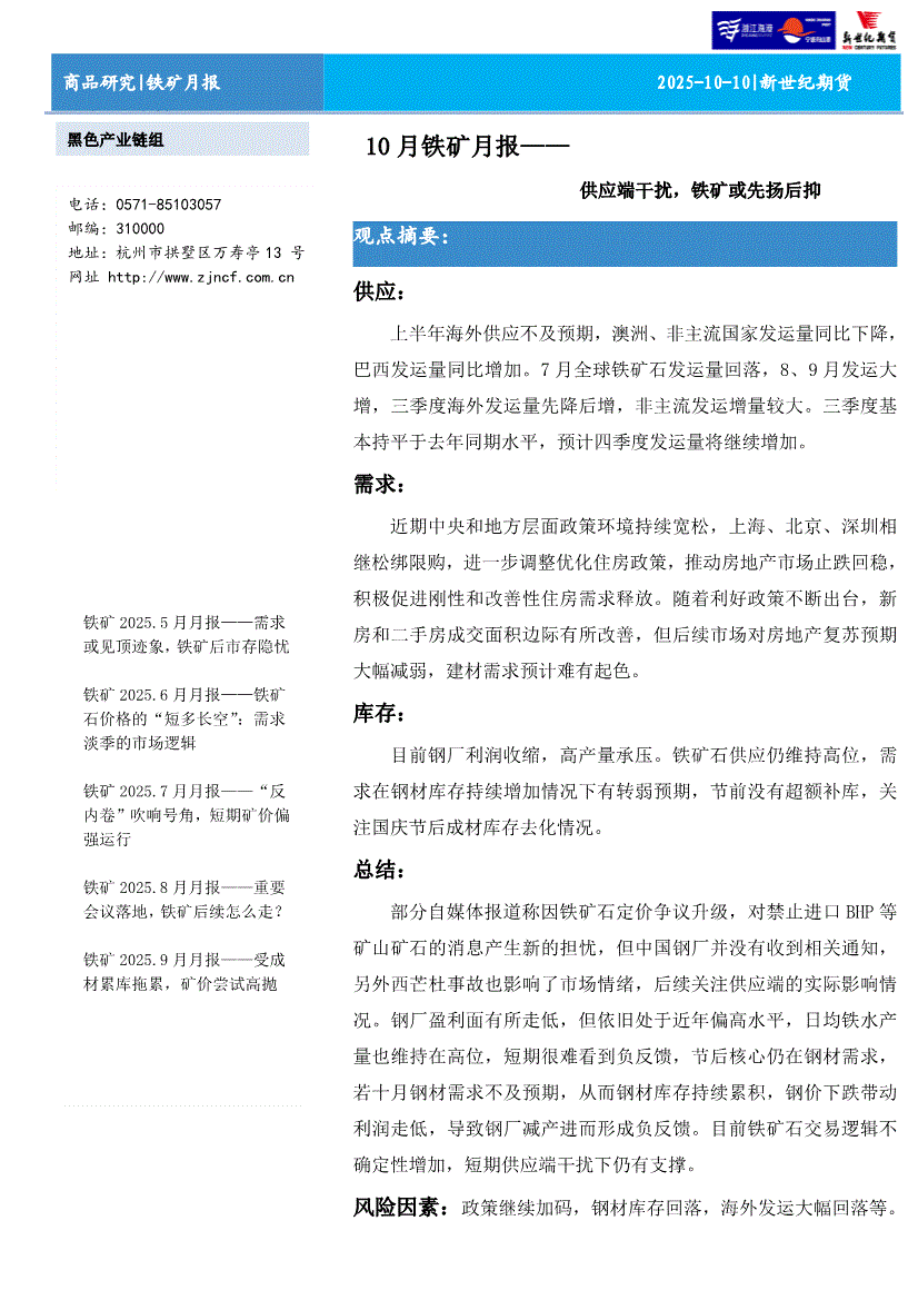 新世纪期货-10月铁矿月报:供应端干扰,铁矿或先扬后抑-251010