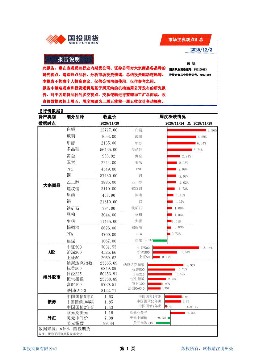 国元期货-贵金属期货周报:宏观宽松托底,贵金属走强-251201