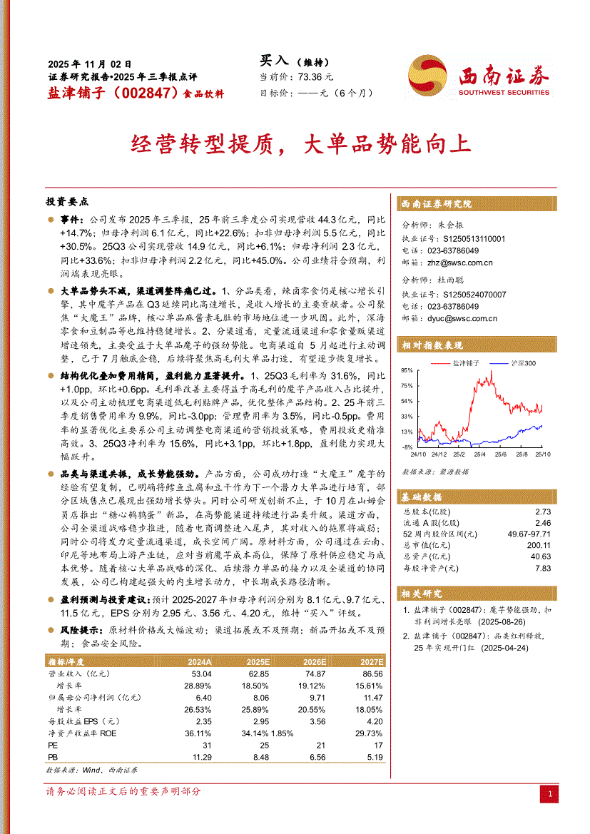 盐津铺子研报:西南证券-盐津铺子-002847-经营转型提质,大单品势能向上-251102