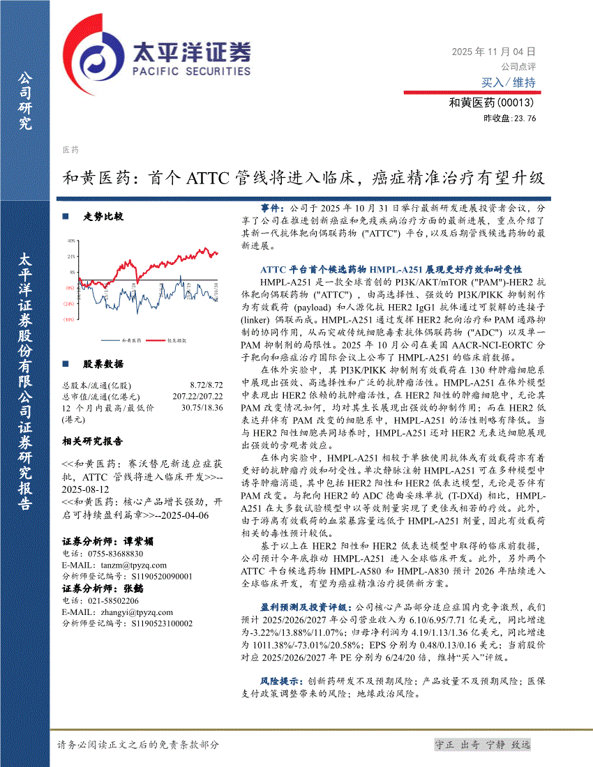和黄医药研报:太平洋证券-和黄医药-0013.HK-首个ATTC管线将进入临床,癌症精准治疗有望升级-251104