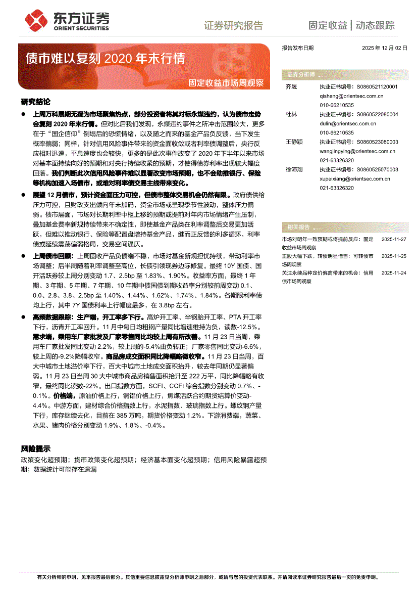 研报:东方证券-固定收益市场周观察:债市难以复刻2020年末行情-251202