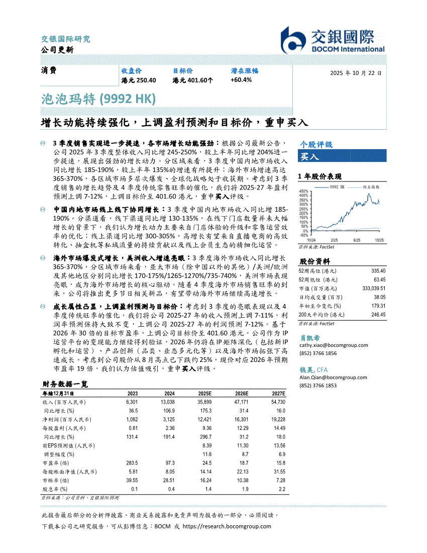 泡泡玛特研报:交银国际-泡泡玛特-9992.HK-增长动能持续强化,上调盈利预测和目标价,重申买入-251022