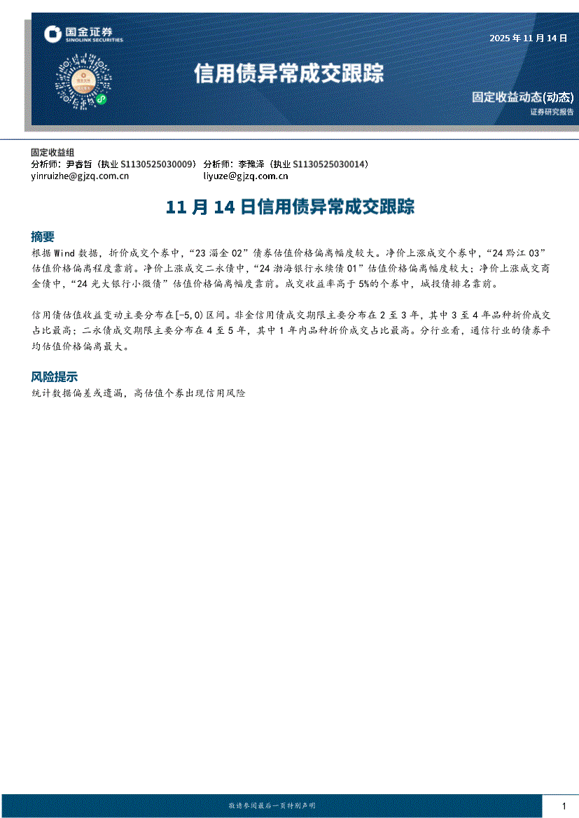 研报:国金证券-信用债异常成交跟踪:11月14日信用债异常成交跟踪-251114