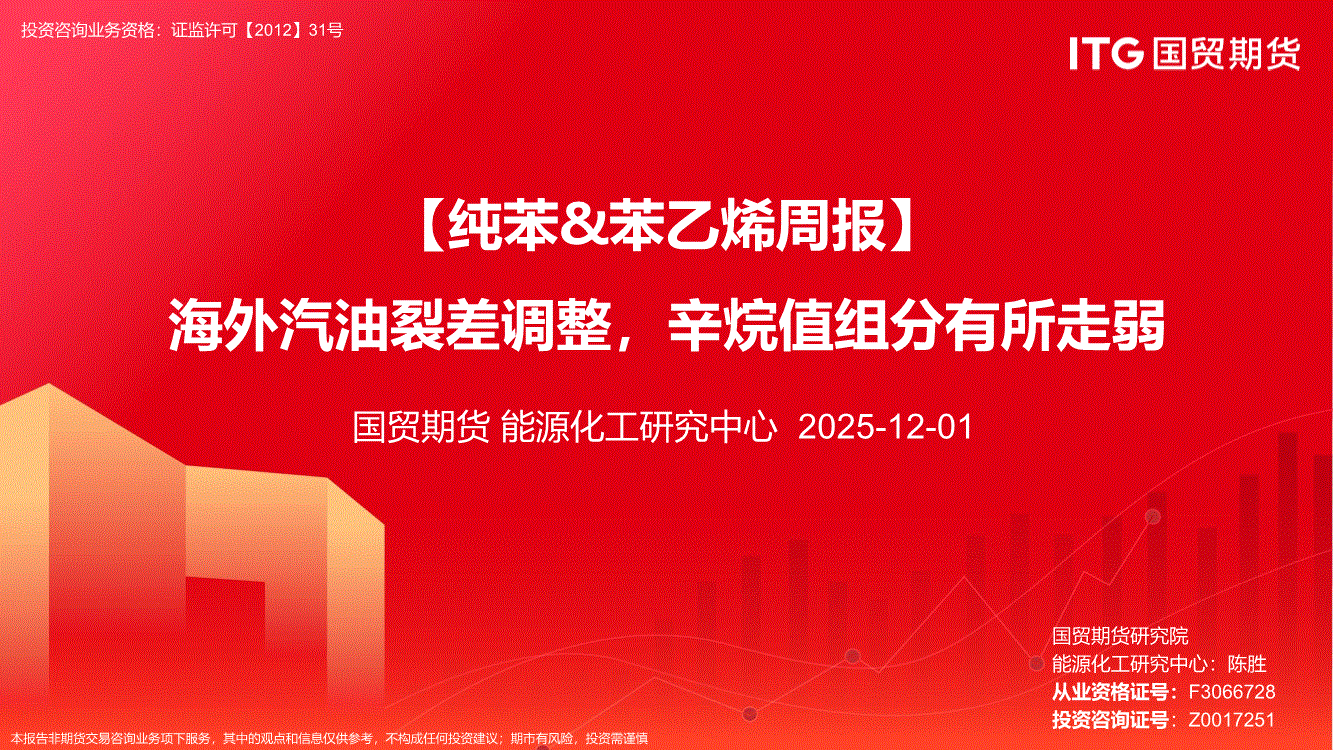 研报:国贸期货-【纯苯&苯乙烯周报】海外汽油裂差调整,辛烷值组分有所走弱-251201