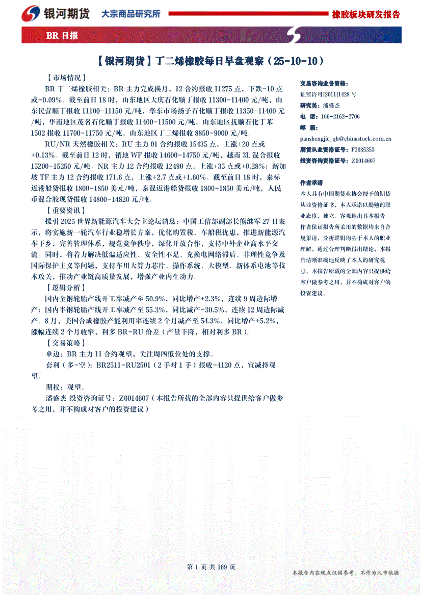 研报:银河期货-丁二烯橡胶每日早盘观察-251010