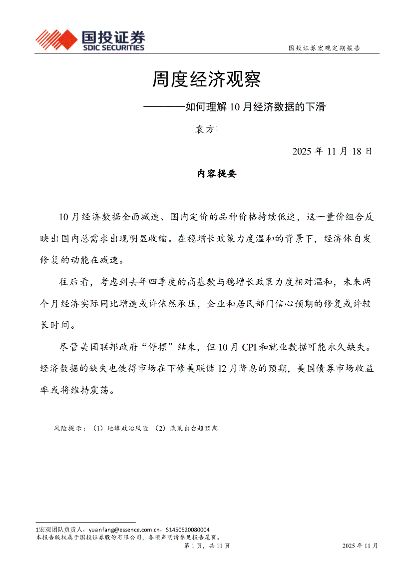 研报:国投证券-周度经济观察:如何理解10月经济数据的下滑-251118
